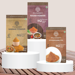 | Daily Essentials Combo Contents: | 1. SAMABR POWDER - 100g 2. RASAM POWDER - 100g 3. VATHAKOZHAMBU POWDER - 100g |