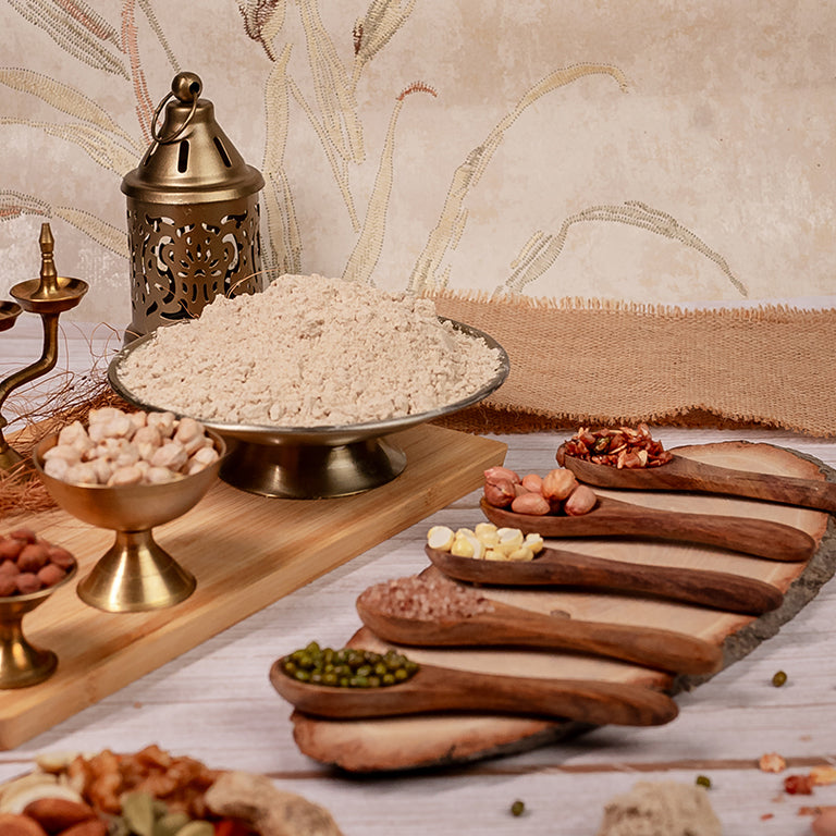 | 22 Ingredients: | Black gram (urad dhal), wheat, black channa, white jowar, kavuni rice, mappillai samba rice, cambu (pearl millet), ragi (finger millet), yellow corn, peanut, green gram, hourse gram, thinai (foxtail millet), saamai (little millet), kuthiraivali (banyard millet), varagu (kodo millet), almond, walnuts, cashew, pistachio, cardamom, dry ginger |
